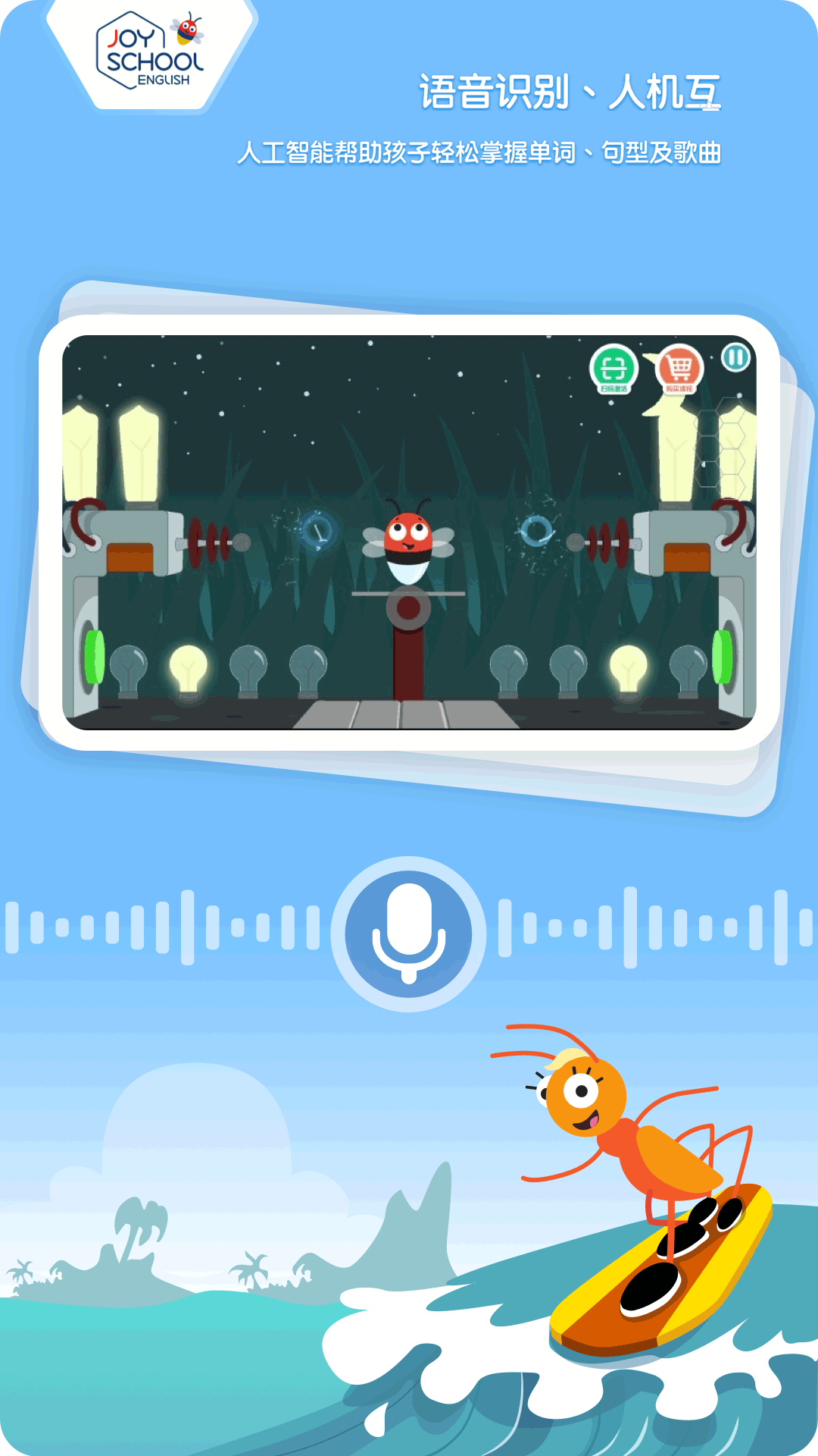 1. 卡通化视觉设计:鲜艳明快的色彩搭配,吸引儿童注意力。